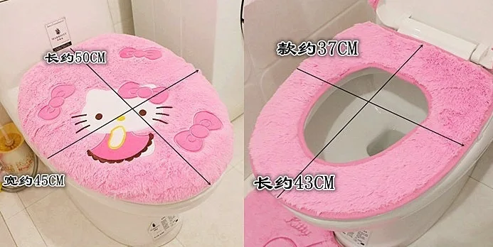 Add kawaii comfort to your bathroom with this Sanrio Hello Kitty toilet seat cushion set! This three-piece plush set fits most toilets, keeping your seat warm and cozy during winter—perfect for home or gift.
